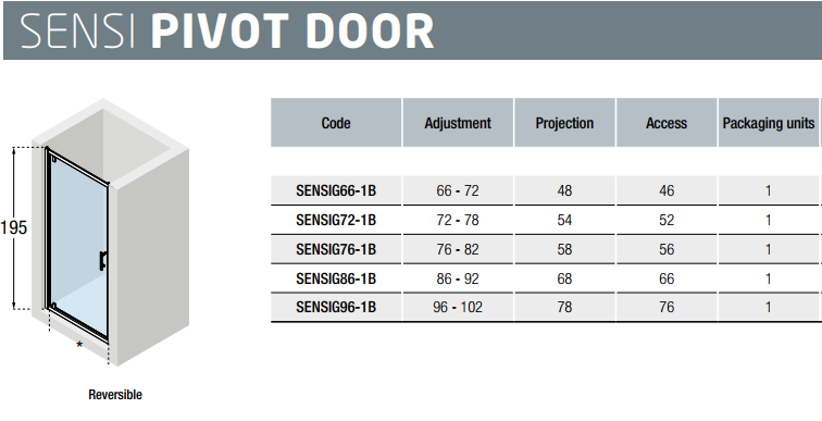 NOVELLINI SENSI VRATA TUŠ 76-82 cm SENSIG76-1B